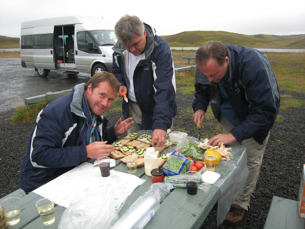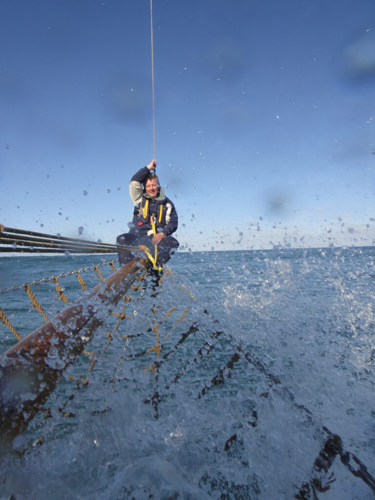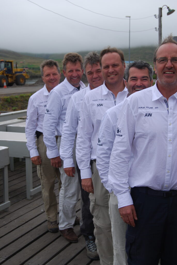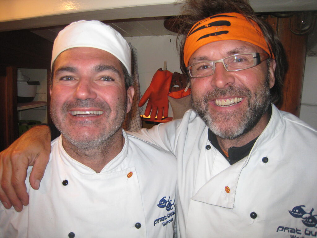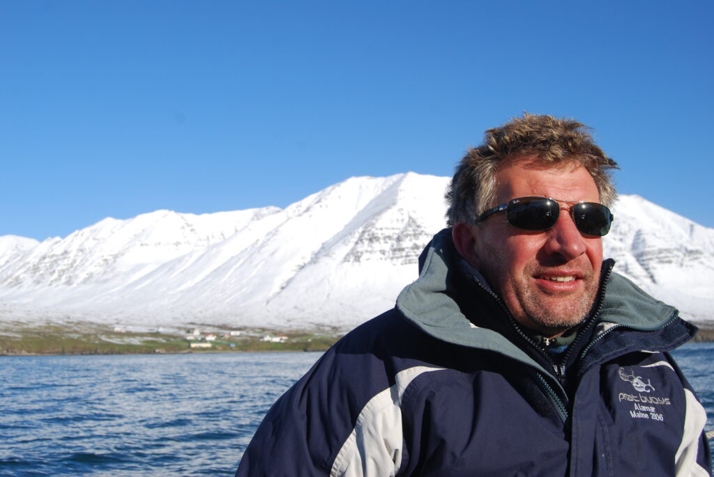 Haukur was set for gentle whale watching tours, not for a typical Phat Buoy voyage, hoisting the heavy canvas sails proved nearly disastrous — “don’t let them touch the water or they’ll drag us under!” — and Simon, acting as human ballast, nearly went with them.