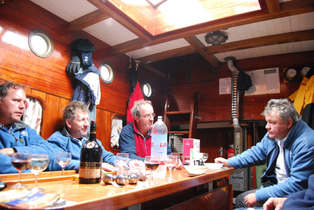 Sailing from Husavik, Akureyri north to Grímsey, the crew crossed the Arctic Circle — officially and ceremonially. Minke and pilot whales swam close, and one night the heavens exploded into Northern Lights so vivid even the whisky froze in mid-air.