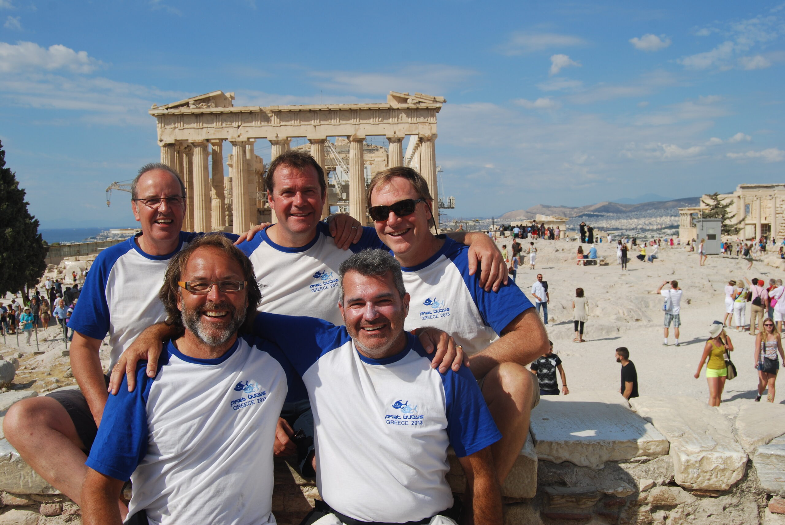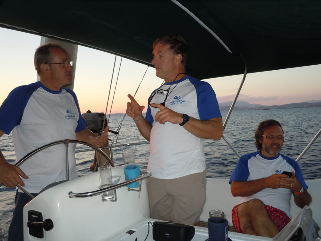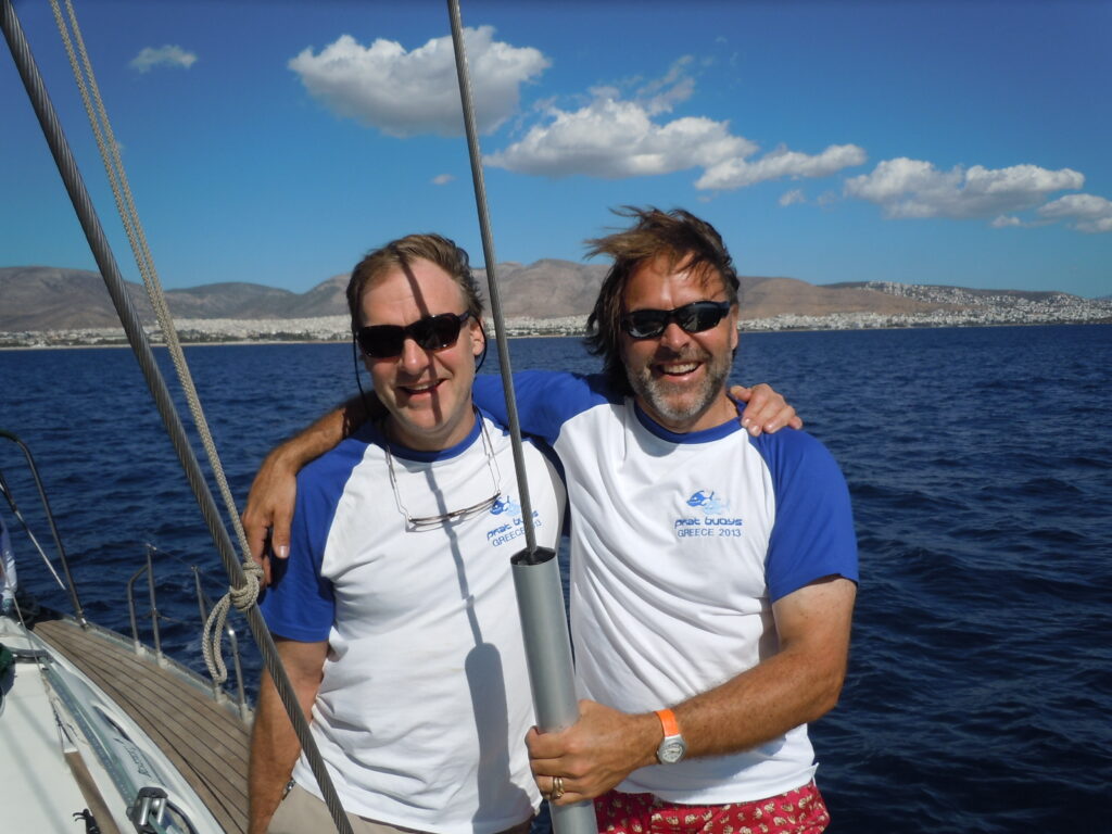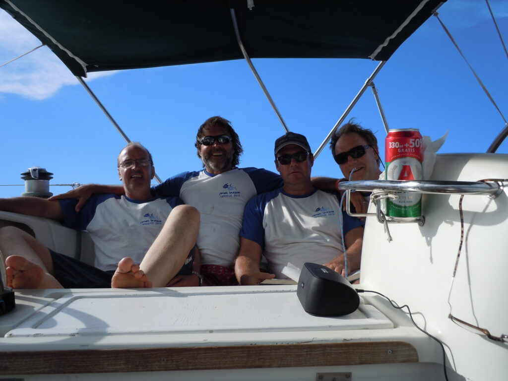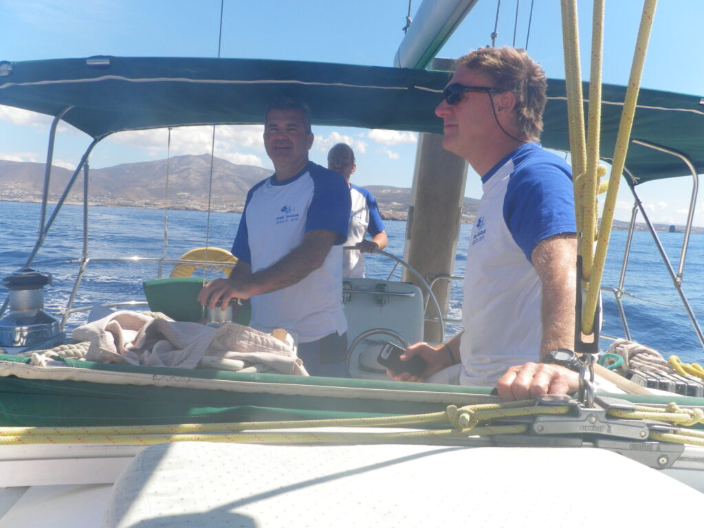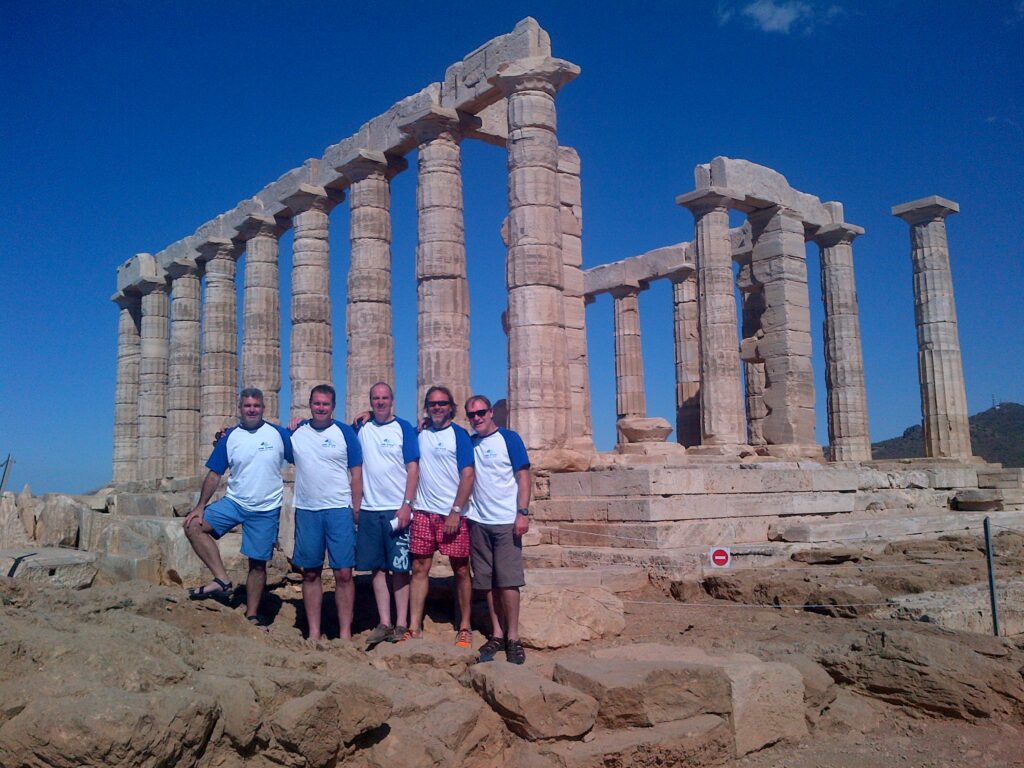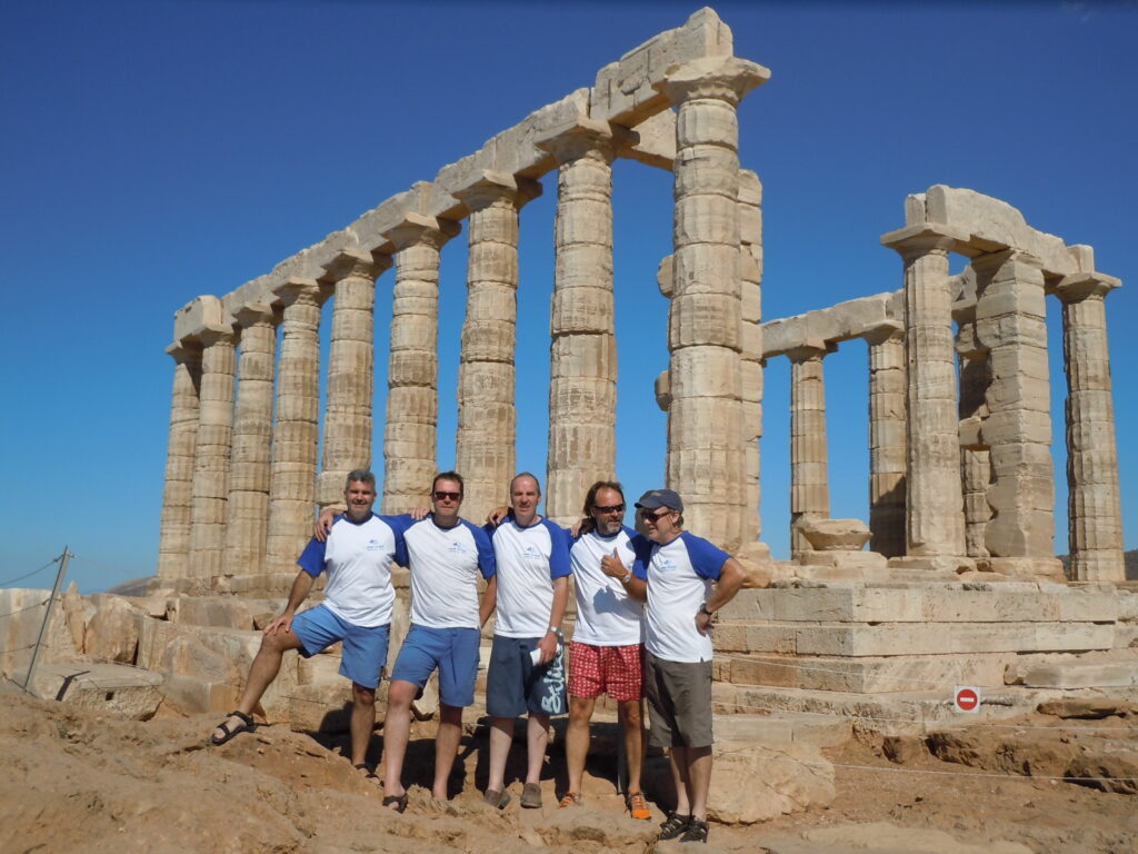 We headed out of Alimos following the Greek coastline down to the secret ancient ruins at Sounion, delivering our barber shop harmonies to the mystic masses. Then on south into the Cyclades, Kea, Kythnos, Paros, Syros and the uninhabited Delos.