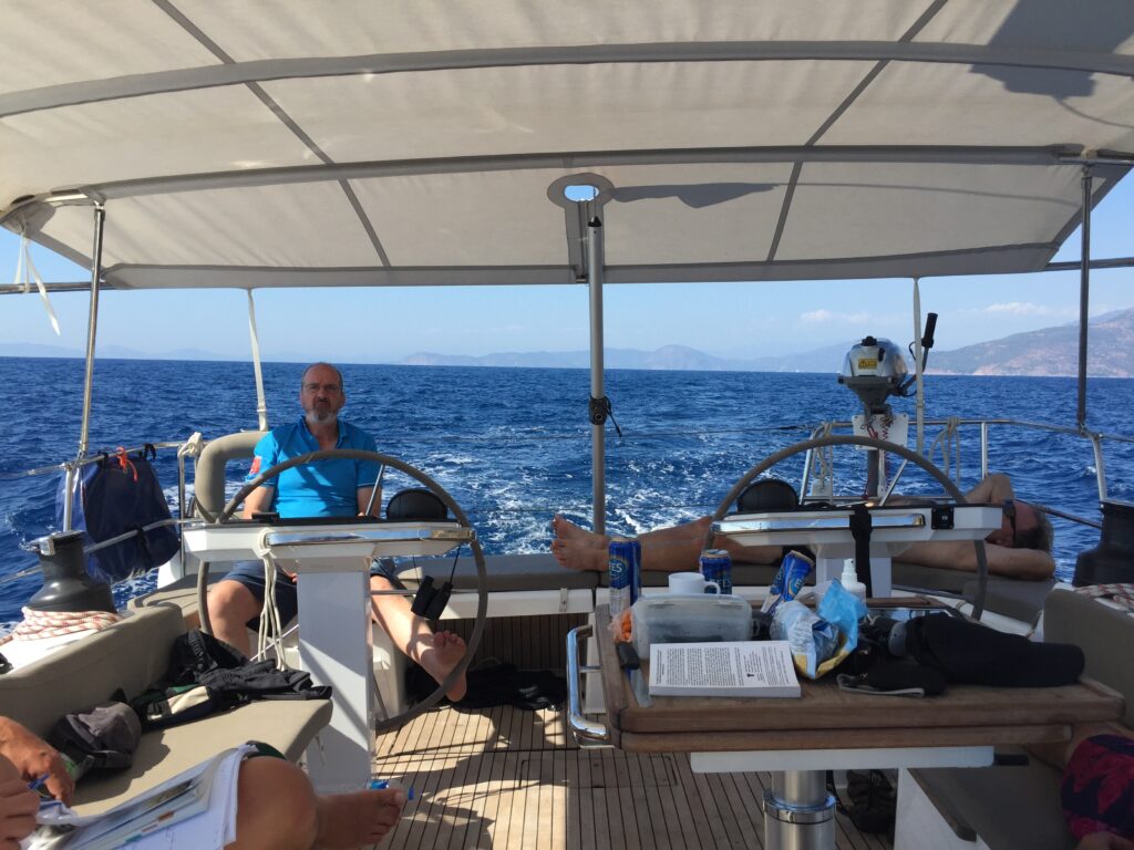 Days of light airs gave way to stillness, leaving time for swimming, hiking, and exploring ruins older than imagination. We climbed rock faces to gaze down over turquoise coves, and each evening dined like emperors beneath fading Ottoman skies.