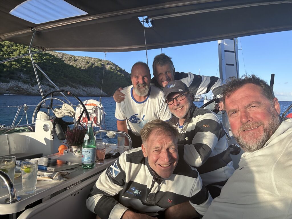 Onshore, the crew immersed themselves in the food, the wine, and the rhythms of island life, and daily hunt for bars showing the Rugby World Cup games — a perfect counterpoint to the shifting winds offshore. The voyage also saw a first for Simon, whose newly acquired drone (flown with enthusiasm and limited success) briefly took to the skies before taking its own course.